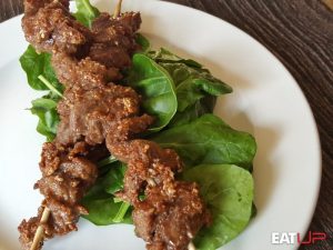 Try these Steak and Peanut Butter Skewers, for a tasty and convenient way to eat meat and nut for breakfast.