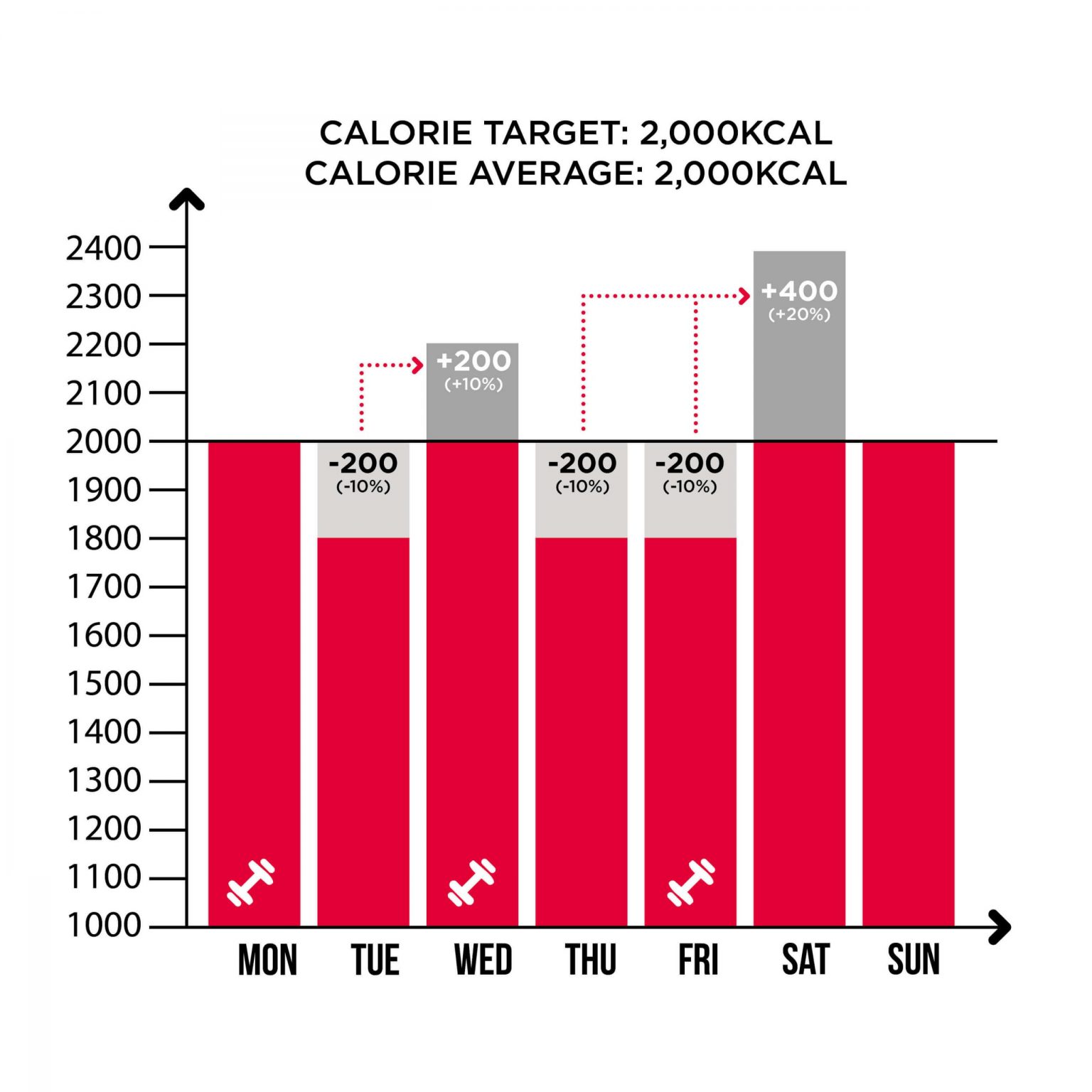 - Shifting calories between days can be an effective way to help you stay on track, when it may be more difficult to stick to the plan, e.g., socialising, travelling, etc.