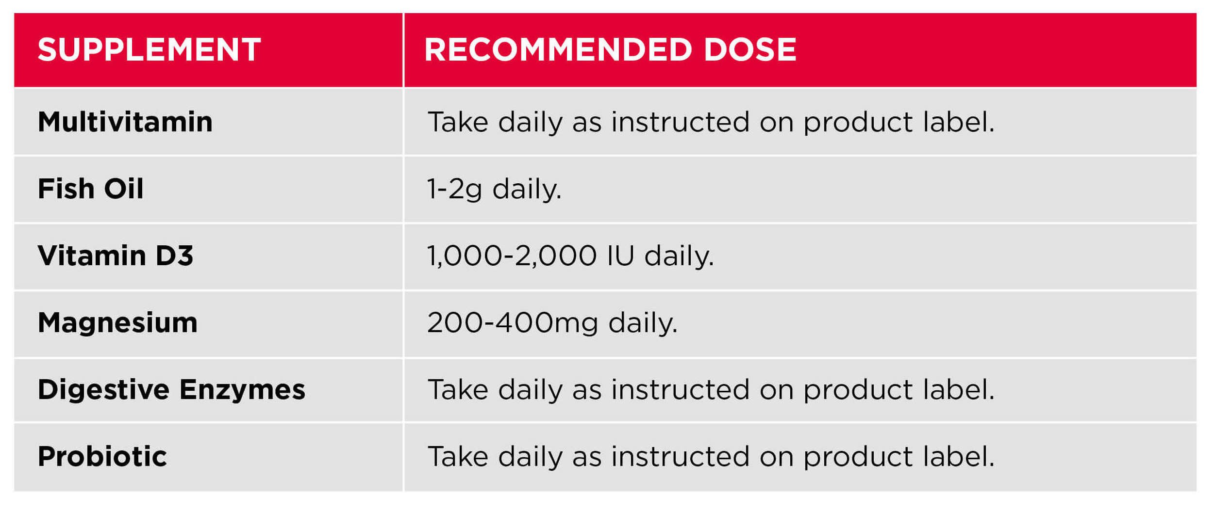 - Dietary and lifestyle changes should always take precedence over supplements.