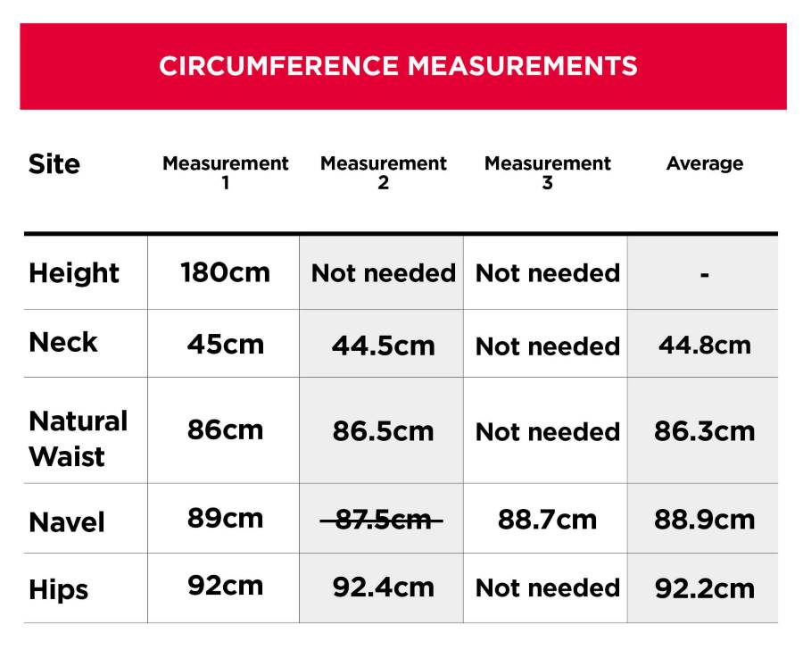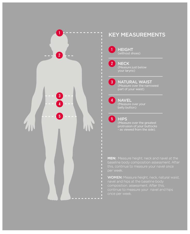MEN: Measure your height, neck and navel at the baseline body composition assessment. After this, continue to measure your navel once per week.